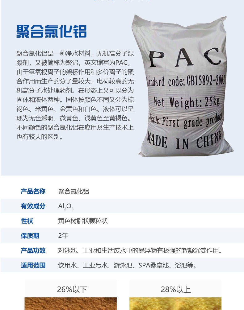 利用雙電層聚合氯化鋁加速沉淀 高分子物質(zhì),在吸附架橋形成的更長(zhǎng)的污染物鏈條物質(zhì),利于沉淀,這類化學(xué)藥劑的吸附架橋作用對(duì)水中的細(xì)微懸浮顆粒進(jìn)一步捕捉,無機(jī)鹽混凝劑聚合氯化鋁PAC對(duì)水中的膠體和細(xì)微的懸浮顆粒進(jìn)行有效的去除。