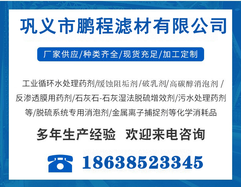 阻垢劑 清洗劑 還原劑 剝離劑 消泡劑——水處理劑廠家 鵬程濾材1月17號正式放假